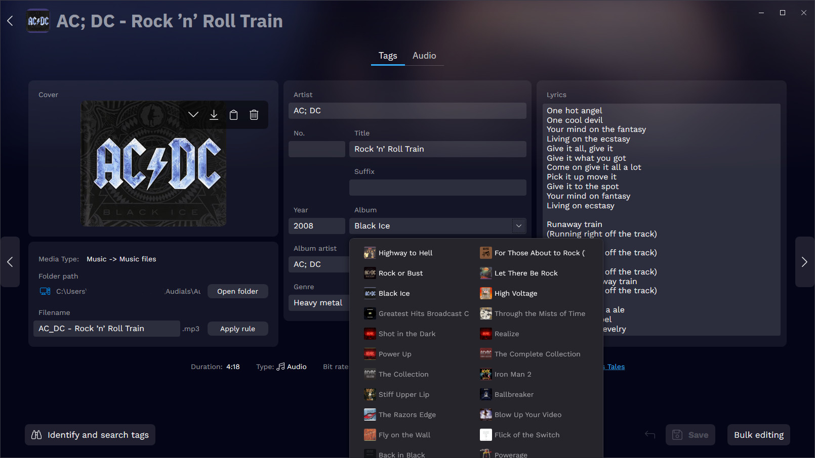 コレクション内の重複曲の検索、編集、削除が簡単にできます。
